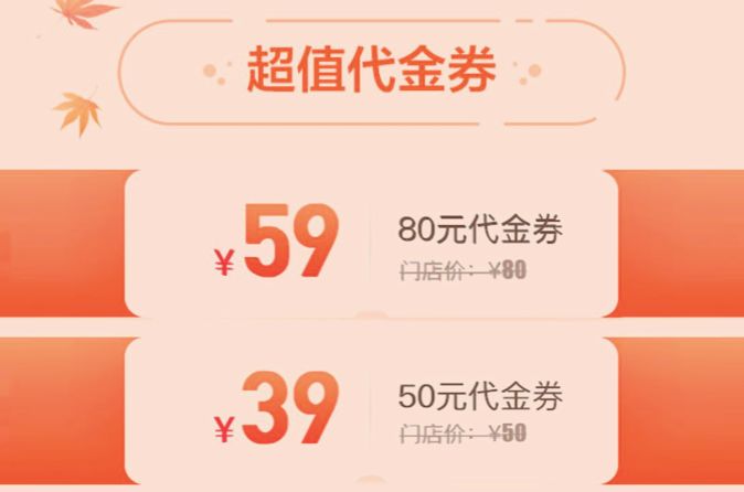 图片来自CoCo都可微信公众号- 超值代金券类似于外卖平台的优惠券折扣方法,花59元买张80元的券,是一种变相的团购促销。