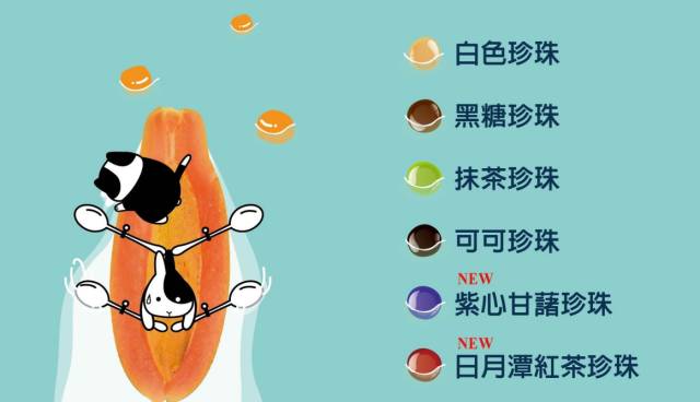 蔬果小珠珠奶茶最亮眼的卖点就是可以随便加珍珠!珍珠一共有5种口味,分别是原味、抹茶、黑糖、巧克力、芝麻。点餐后,店员会把杯子给你,你就可以任选珍珠,之后再制作饮料。