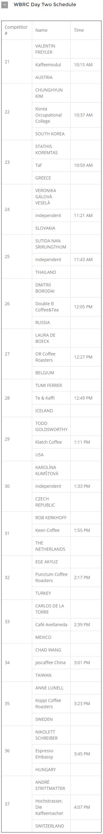下面来是WBRC另一位中国代表选手是来自南京M2M Coffee 的 杜嘉宁 Du JiaNing,在第一日的第14号上场北京时间23日22:31 上场