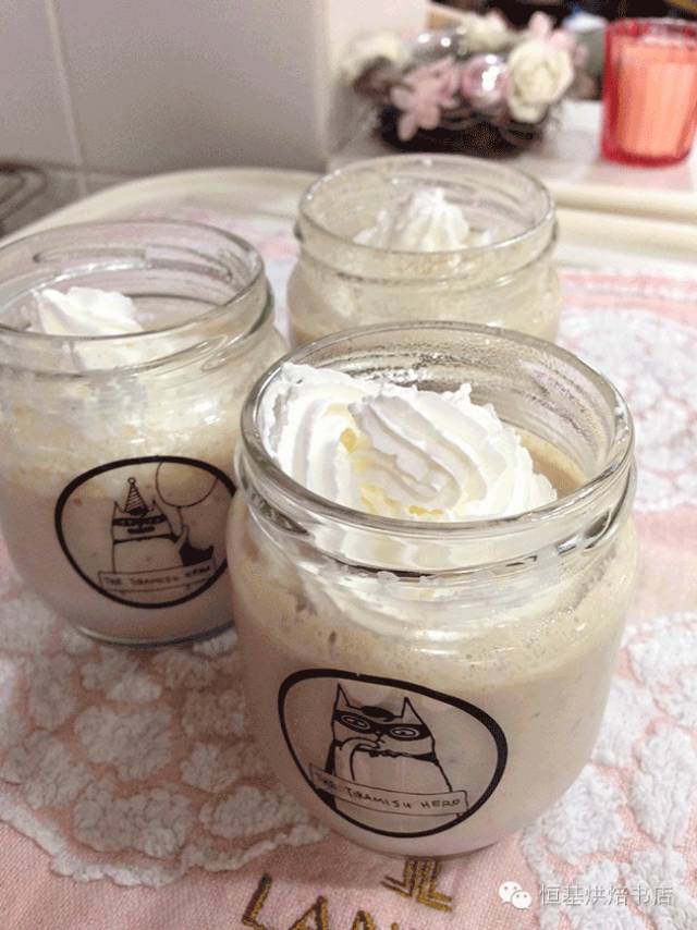 4.將均勻打好的布丁液倒入玻璃罐中,等到冷卻成固体狀後,將枫糖浆淋在上方並放進冰箱冰涼後即可享用