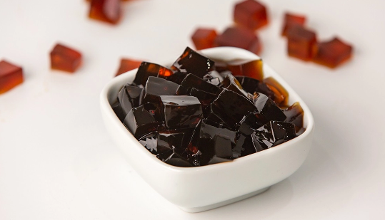 在茶饮市场中,冻冻类产品的主要制作原料为“果冻粉”。其制作原理为原料中的“胶质”经加热后融化,冷却后凝固成型。