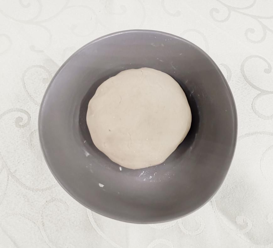 4、将条形粉团搓成原型(可不搓),切段,取少量预拌粉撒于表面并轻轻混匀,备用;