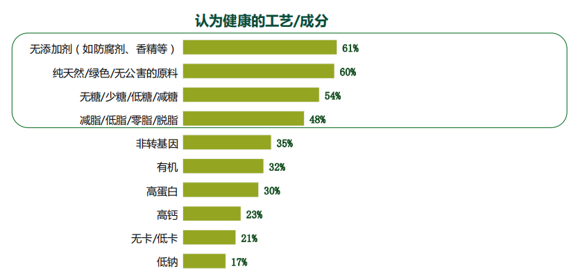 图源:《益普索2020健康饮料研究》在健康工艺方面,无添加剂、纯天然、无糖/少糖/低糖、减脂/0脂是90后茶饮用户公认的健康工艺,此外非转基因、有机、高蛋白、高钙、无卡/低卡、低钠等健康元素也有一定的认知度。