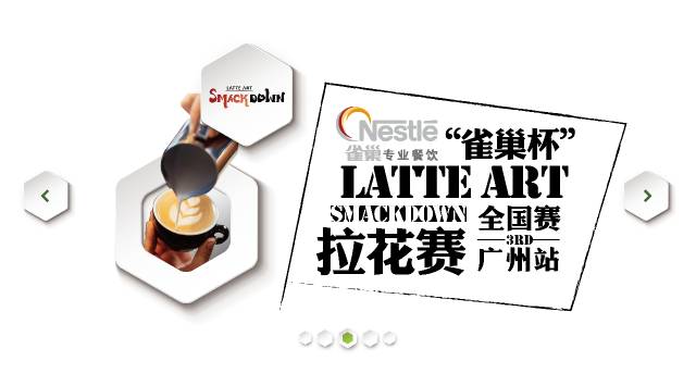参 赛 选 手 需 知预选赛场地:艺外咖啡馆 具体地址:广州市天河区珠江东路2号广东省博物馆东门2楼(近广州图书馆)时间:5月14号 A组时间:13:00 - 16:00 (A组选手12:00 进行签到,12:30 开始抽签决定对抗选手,晚于12:30 到者将被取消参赛资格)B组时间:17:00 - 20:00 (B组选手16:00 进行签到,16:30 开始抽签决定对抗选手,晚于16:30 到者将被取消参赛资格)预选赛规则:1、比赛顺序:赛前选手将通过抽取扑克牌的方式确定对手及出场顺序。2、比赛形式:比赛基本形式是“一对一”两两对抗模式,采用“淘汰制”。若出现单数情况,将由当组参赛的所有选手进行抽签,幸运返场直接进入决赛。3、关于比赛图案:拉花图案的选取方法,是通过现场临时挑选的,但非当时比赛两名选手的任何人投掷带有拉花图案的“飞镖盘”的方式,来确定比赛图案(飞镖上的花型分别是均等份的心形、树叶、郁金香及自由创意拉花)。拉花比赛图案的选择为“基本拉花图案”和自由创意拉花图案。基本拉花图案设置为:心形、郁金香、树叶、天鹅,在比赛当中,当选手选到了基本拉花图案时,可以选择不同的手法和表现形式,但不允许使用组合拉花形式。Free Pour 在本赛制中指自由创意拉花,旨在鼓励大家在拉花图形上进行创意,在选到了自由创意拉花时,可以选择基本拉花图形、组合拉花图形、高阶拉花和创意拉花中的任意一种。组合拉花图形指一杯中拉花图案为多个基础拉花图案或高阶拉花图案的组合,如:多片叶子、两只以上天鹅等。(注:由于咖啡杯的规格有限,一杯中如果做多个图案,每个图案的精细程度比较难以保证,但从拉花技法上是得到锻炼的)。创意拉花指选手个人独创的单独花型(不涵盖高度复杂的组合图形),从花型精细程度上讲,高阶拉花和创意拉花没有明显的界限,图案是现有基础图案的复杂表现形式,如玫瑰、多层郁金香、孔雀等,或新创立的图案,比赛鼓励选手进行拉花创意,并在评比是考虑图案的创意性。4、时间规定:比赛场上准备时间不超过1分钟。每位选手只需要制作一杯拉花作品,使用的咖啡杯为8OZ或240ML的容量。比赛时间为3分钟,两名选手同时开始比赛,某位选手如果认为第一杯咖啡拉花不够好的话,如果有时间准备第二杯是允许的,但只能选取其中的一杯作为比赛作品,时间结束以咖啡杯送到评委面前为止。5、比赛使用工具和用品:比赛将使用大赛主办方和赞助商提供的咖啡机、咖啡杯、磨豆机、粉锤、咖啡和牛奶,但选手可以使用自己选择的拉花缸。本拉花比赛不允许使用牛奶和咖啡以外的其他添加物,如巧克力粉等,不允许使用雕花工具,拉花结束后也不允许使用其他任何物品(包括咖啡豆)、物件或工具进行修饰和后期加工。6、比赛结果:A, B两组各决出15名拉花师,晋级到15号晚举办的雀巢杯拉花对抗赛广州站的比赛。