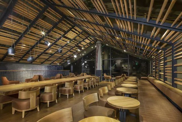 在环球影城门口,还有一家好莱坞主题的星巴克好莱坞环球影城《哈利•波特》主题乐园门口,坐落着这家好莱坞主题星巴克。既然坐落于电影工业的圣地,这家星巴克在设计上脱离不了工业风格的影子。在面积达到 5000 平方英尺(约合 470 平方米)的店铺内部,使用了大量黑胡桃实木元素,并搭配上黑色钢架与黄铜紧固件,营造工业风的同时致敬 20 世纪 30 年代的好莱坞。