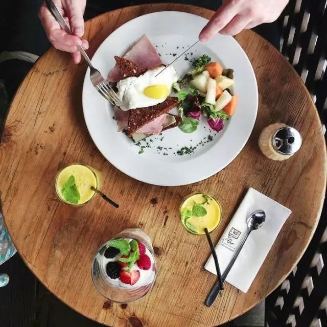 如果在什么角度拍摄感觉不满意的话,我们可以从上面往下拍摄,我们看到很多从上方角度拍摄的美食,都是很有感觉的,无论是餐桌上的餐具、花艺摆设、桌布都可以让画面看起来更加丰富和有意境,让观者有种想要加入其中的冲动。