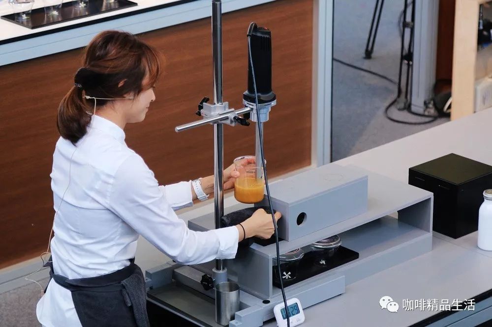 5号选手JOO YEON代表Momos Coffee来自SOUTH KOREA韩国韩国小姐姐萃取环节失误超时56秒,下场后在后场哭了……但她的笑容和创意咖啡的特别装备我们记住了