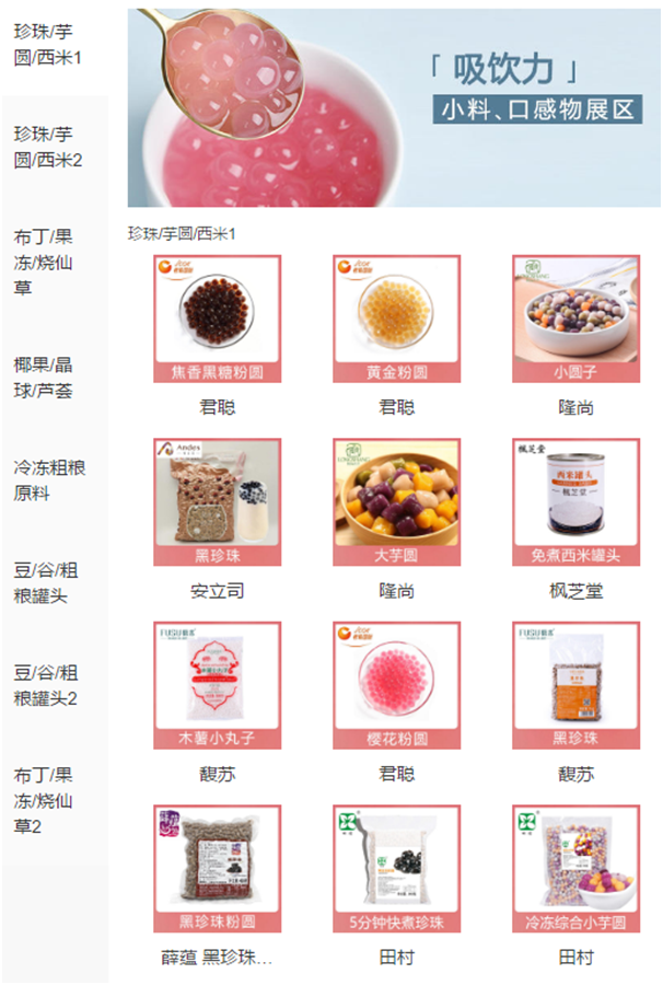 点击分类,进入界面后可查看任意商品详情。该界面全年365天在线,并实时更新,让“吸饮力新茶展”实现全行业、全品类、全天候的信息展示功能。