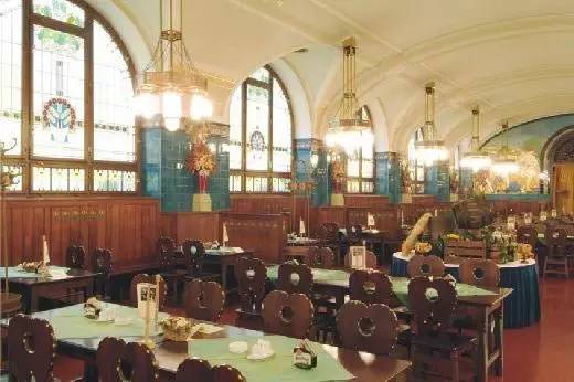 坐落在Grand Evropa Hotel的内部,这间咖啡馆处处透露出瓦茨拉夫广场曾经的金碧辉煌,那是一种会在你的脑海中萦绕久久的美。人们称它为布拉格的艺术派宝石。坐在周围满是木质装潢和蚀刻玻璃的的咖啡馆,轻抿一口咖啡,时不时接触到窗外行人投来的羡煞的目光,整个午后是多么的美好。你一定看过电影史上的宏伟巨作【泰坦尼克号】,电影里船舱的主接待餐厅,就是取景于这家Grand Hotel Evropa Cafe。说不定你在此也可以来一场与Jack和Rose般唯美的恋爱邂逅。