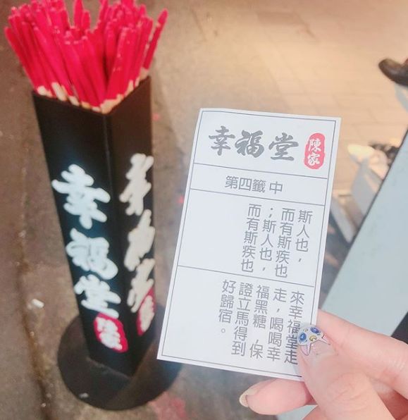 更有意思的是,他们在门店设置了幸福抽签,在等待饮品或者买好的饮品的时候,大家都会非常乐意主动去抽一根象征幸福的签,可以说,买一杯幸福堂奶茶,收获到的幸福比预期要高得多了。