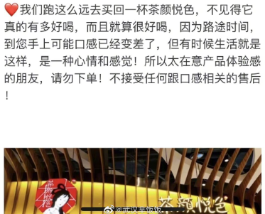 因路途时间长,饮品口感可能已经变差,有时候生活就是这样,是一种心情和感觉。