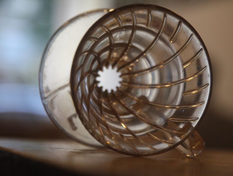 风味:入口是明显的柑橘、柠檬、佛手柑的风味,有着清新的茉莉花和姜花的花香,带着蜂蜜的甜感以及绿茶茶感。【V60】V60滤杯的设计是以水位下降速度的快慢为重点,让咖啡粉颗粒达到比较好的萃取流速较快,内部肋骨采用弧度的漩涡结构设计,辅助加快水流,从底部延伸到顶端,说明排气效果流畅。弯曲的肋骨增加水流路径,来增加咖啡粉颗粒和水的接触时间。