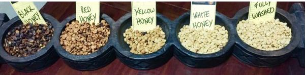 蜜处理,是指带着黏膜进行日晒干燥的生豆制成过程。在咖啡豆去掉外层的果肉之后,会有层黏稠状的胶状物。传统的水洗处理法会用清水把它洗去,而有些产区为了更方面的处理咖啡豆或追求蜜处理的特殊风味效果,则会采用不同程度的蜜处理,原本非洲产区传统的方式是以水洗和日晒为主,而近两年受市场的影响,产区也关注各种非传统的处理方式以获得新的风味。果胶粘膜部分是咖啡果糖分含量最高的部分,也是咖啡处理发酵的重要组成部分,可以说这个部分80%的决定了处理过程中营养的补给,果胶保留的程度不同,豆子的发酵以及甜感也大不相同,因此蜜处理也分为黑蜜、黄蜜、红蜜、白蜜;黄蜜保留60%的果胶,红蜜保留75%的果胶,白蜜保留30%的果胶,黑蜜几乎不去除果胶。而这次耶加红蜜红樱桃就是保留了75%的果胶哟~~