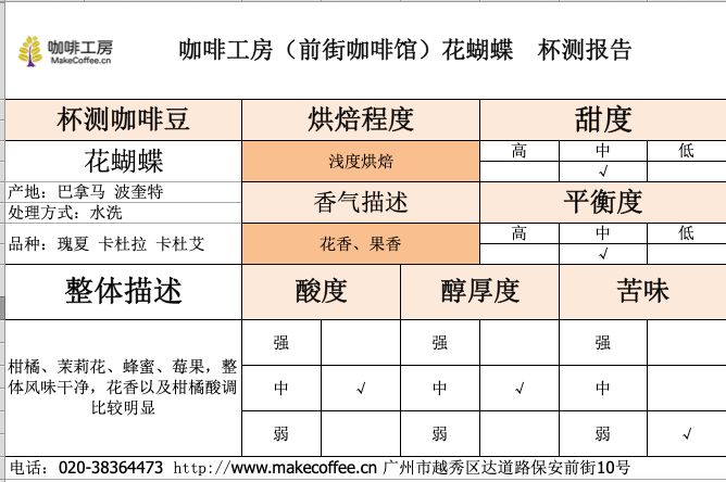 手法:用30克水闷蒸30秒后再注水至120克,待水下降至见粉床后再注至227克,见粉床移走滤杯,萃取时间为1’53”。风味:柑橘、西柚、李子、坚果、奶油、乌龙茶、花香、红糖,整体感觉比较醇厚。【巴拿马·花蝴蝶】参数:HARIO V60/90℃/1:15/研磨度BG 5R(中国标准20号筛网通过率58%)/冲煮手法:分段式萃取