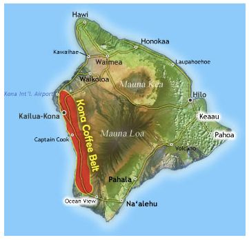 这里的西部和南部以盛产KONA咖啡著称,海拔在800~1100米之间,是咖啡树最适宜的生长环境。因此,在霍阿拉拉和毛那洛亚的山坡上长满了咖啡树。