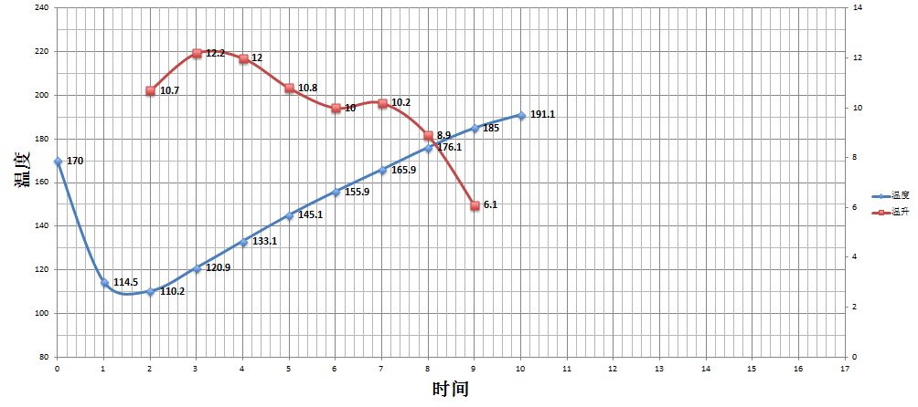 炉温至摄氏170℃入锅,风门开设3,火力为100;回温点1'45",炉温140℃时火力不变,风门开至3.5;炉温143.3℃时豆表变为黄色,青草味完全消失,进入脱水阶段。