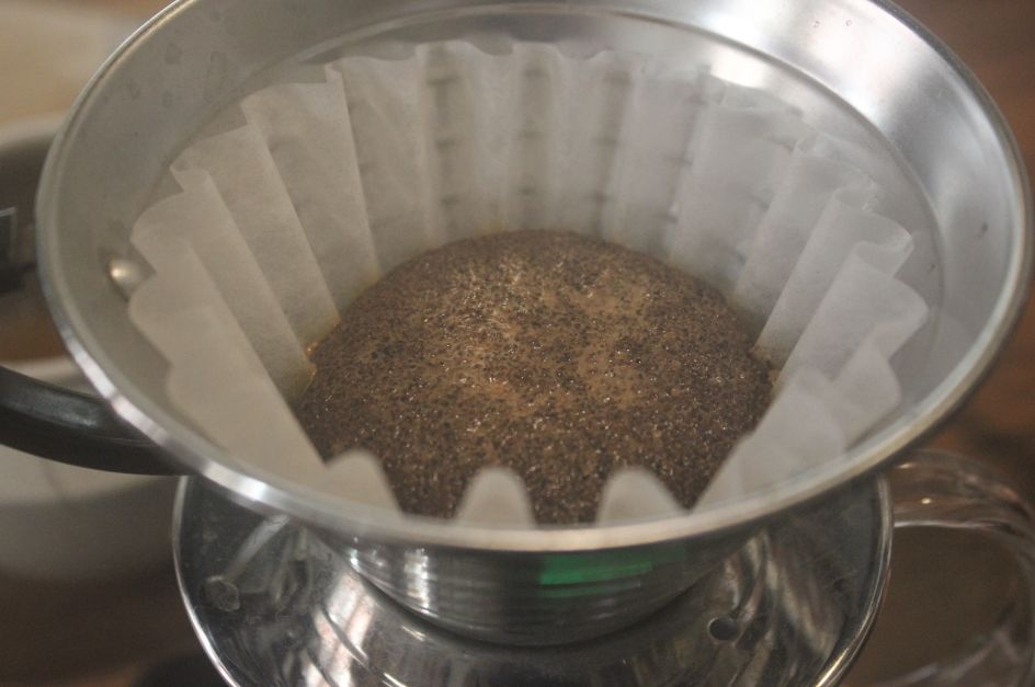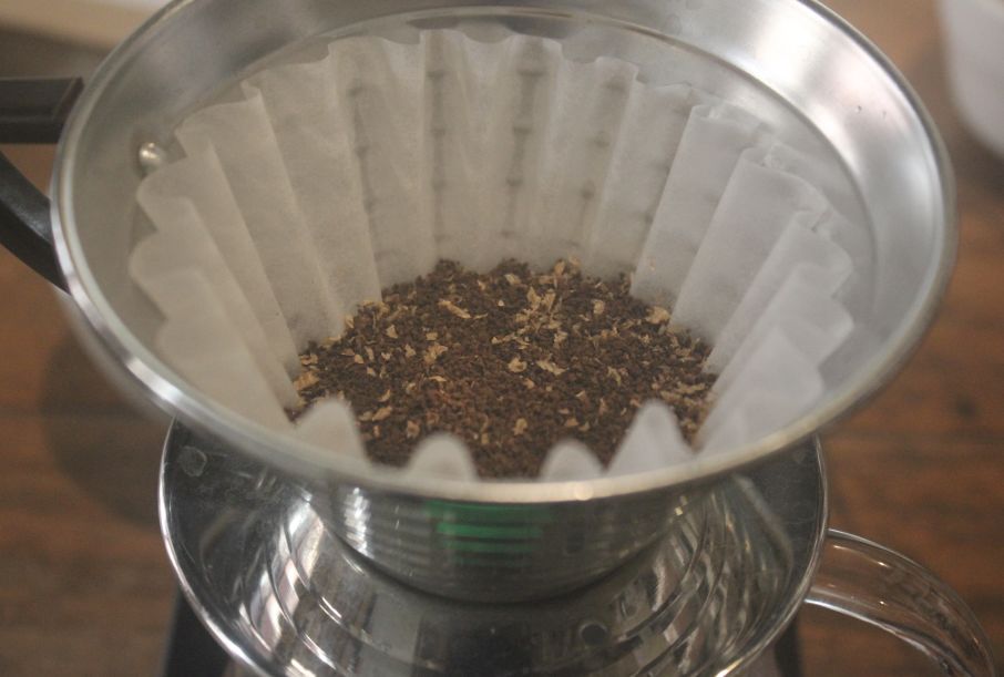 加上滤纸后,滤杯和滤纸之间因有很多凸点,所以贴合度不算很高,水能够渗透滤纸从凸点之间的缝隙流走能起到防止过萃的作用。且这些凸点可以附着细粉,如此一来,在细粉被附着在杯壁上沿的情况下,底部浸泡的大部分是相对研磨度比较粗的颗粒,于是在萃取率得以提升的情况下,并大大降低过度萃取的几率。