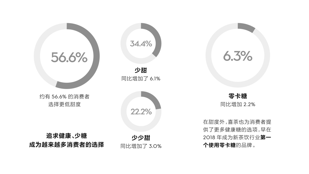 在甜度外,喜茶也为消费者提供了更多健康糖的选项, 2020年选择零卡糖的消费者占比6.3%,同比增加2.2%。