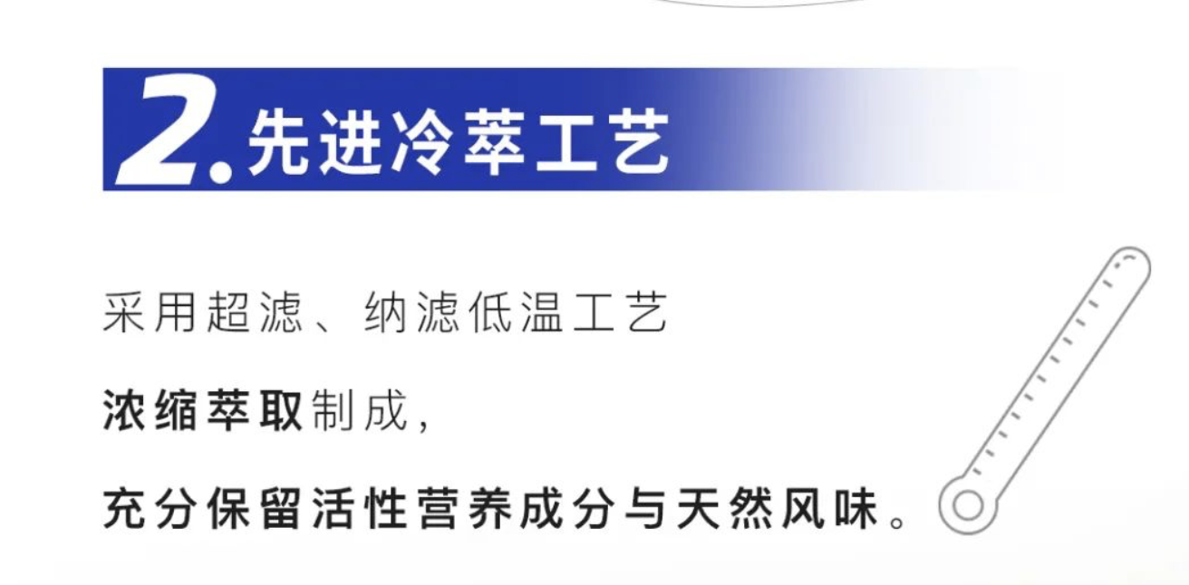 其中,“冷萃”指的是这款产品采用的超滤、纳滤低温浓缩萃取,能保留更好的风味;“厚”指的是乳制品乳蛋白含量较高,达到6%,比常规牛乳高出一倍,使得奶香味更加浓郁。