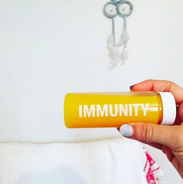 也有一些新鲜蔬果冰沙,用透明随身瓶盛装,缤纷的色泽,让人一看马上就被吸住了,上面还印著FUEL(补充燃料)、IMMUNITY(增强免疫力)等健康概念标语。