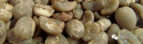 c. 瑕疵与kuku kambing (羊蹄豆) 湿刨法刨去羊皮纸的时候,咖啡的含水量依然有20-24%之高,而在一般的处理法中咖啡含水量降到10-12%才进行脱壳。在“半干”的状态下,羊皮纸会有黏附在生豆表面的情况,脱去羊皮纸较“全干”更加困难,脱壳过程需要更大的摩擦力。 但从另一方面来讲,“半干”的咖啡生豆此时是非常脆弱的,硬度远不及“全干”生豆,所以豆子会比较容易被挤伤,形成小的缺口。这就是我们常说的马蹄或羊蹄豆(在当地被称做 kuku kambing )。