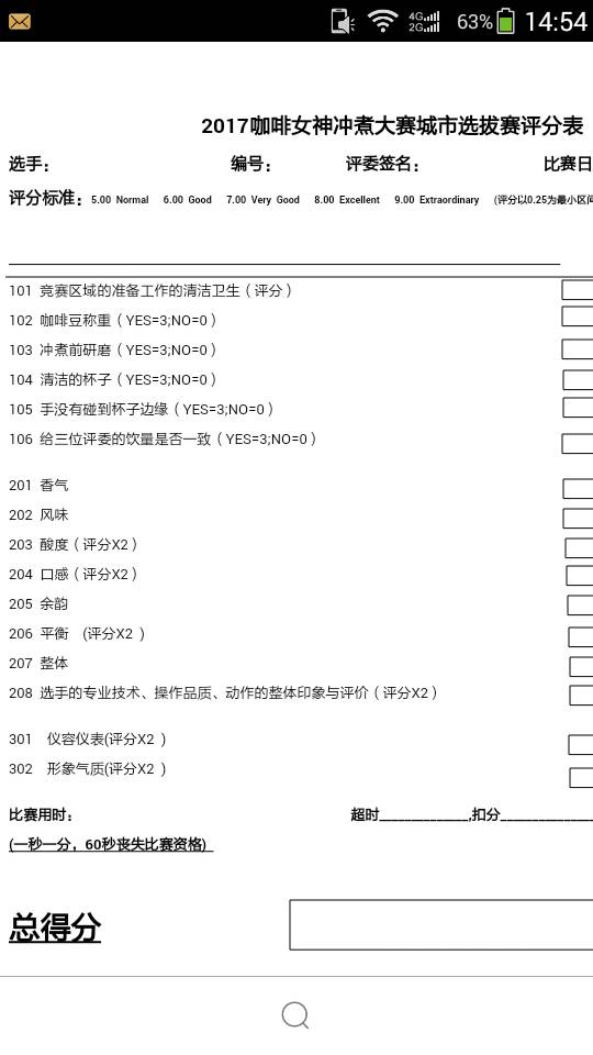 通过以上的指定冲煮说明还有上面这张评分表可以看出,女神冲煮赛的城市选拔赛的难度系数很低(冲煮过程也不用讲解),参赛选手就像在吧台或是自家,按照自己的习惯冲煮出一壶咖啡并分享给三位朋友一样,这个比赛内容的设置,考究的是女神平时的冲煮习惯(比如卫生清洁情况,冲煮过程的熟练程度,还有对工具的合理利用等),还有一个得分点的整体印象分,就像上面姜涛老师强调一样:整洁、干净的妆容是女神的标配,阳光、自信的笑容可以展示女神的魅力。换句话说,参加城市选拔赛的所有女神,什么都不用带,直接到比赛现场,会每人发100g比赛豆,现场有高颜值的冲煮器具,你只要轻轻松松冲煮一壶咖啡就可以了!