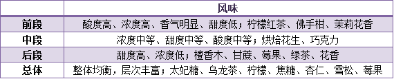 先是分别试了一下三壶有什么区别,然后再把它们混在一起进行对比。前段闻起来就是很浓郁的水果酸香,入口柠檬、佛手柑般的果酸很是明显;中段的酸度并不明显,喝起来比较淡,是烘焙花生和巧克力的味道;而后段的甜度是三壶中最高的,但是浓度却是最低的,喝起来是檀香木、绿茶的感觉比较明显,同时带着甘蔗般的甜感,带着淡淡的莓果和花香。