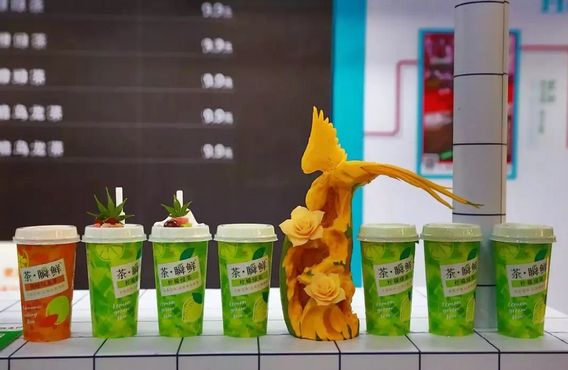 超市中摆放的茶瞬鲜名字也直接赤裸地表达理念——“瞬鲜”,强调新鲜。产品目前有柠檬绿茶和青橘乌龙茶两种口味,分别以绿色和橘色为主色调。