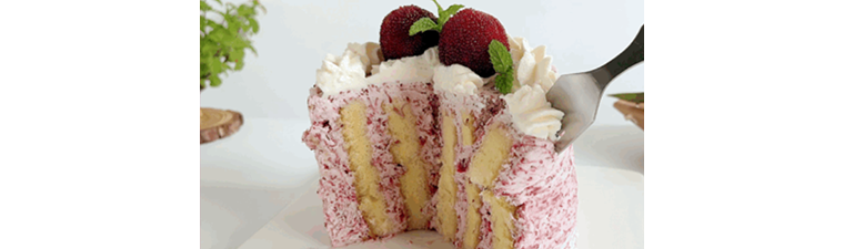 ⑥表面喷雾水,在镂空粉筛模具上筛适量面粉装饰花纹。