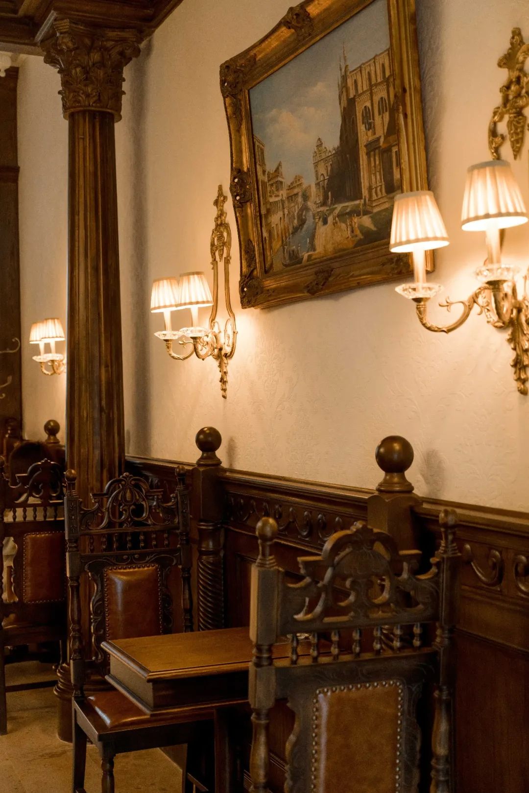 摄影:Simon©一筑一事穿过咖啡吧台两侧的古罗马风格圆拱过道进入空间深处,仿佛回到了18世纪的欧洲,洛可可风格吊灯和壁灯、新古典主义艺术风格的油画、奢华又精美的巨大吊顶、哥特风格的彩绘玻璃和落地窗......每一处都展示着设计者的审美趣味和用心程度。为了体现更为纯正的Antique文化,UID Café还在大厅专门设计了一个Cabinet Room(经典奢享空间)的独立包间区域,提前预定及达到一定低消就可以享用。
