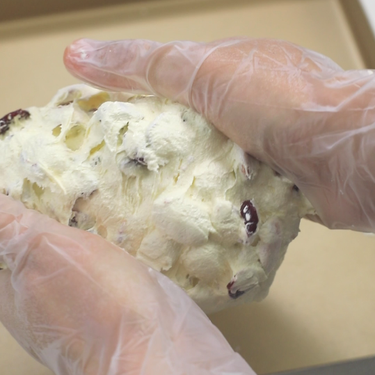 参考量:28方盘的一半a部分麦芽糖浆 245g清水20g细砂糖(海藻糖)70g盐0.5gb部分蛋白40g细砂糖15g无盐黄油30g奶油芝士30g全脂奶粉105gc部分巴旦木175g蔓越莓干100g