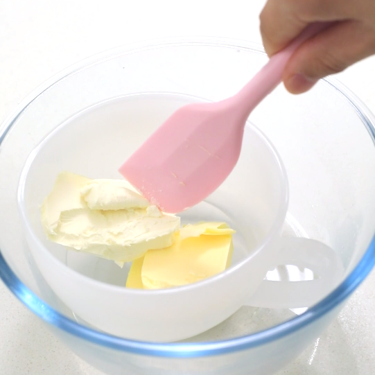 ②30g无盐黄油加30g奶油芝士,并坐45℃热水。