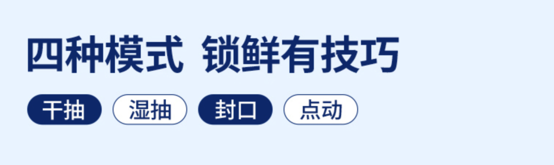 ✅四种模式,多种场景轻轻松松实现保鲜,郊游带的水果,吃剩的小零食,需要分装的肉等等,都可以用它来保鲜哦~