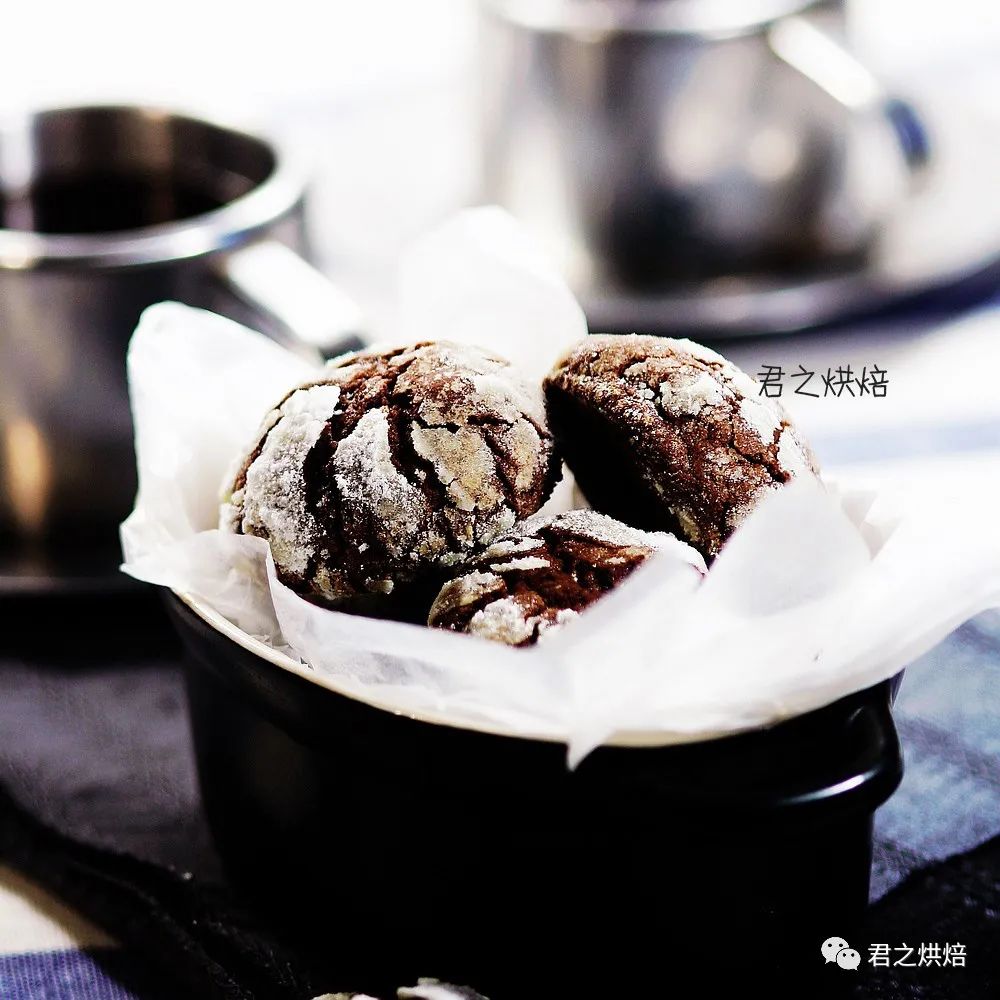 最近发食谱我就发现,饼干类的食谱,一直都不如其他食谱受欢迎。但“啊啊啊我裂开了”这款曲奇,我觉得它应该值得在家刷一次!首先,它是一款很好玩儿的曲奇,在烤的时候,它会自动裂开呈现漂亮的花纹——每一块的花纹都自然形成,错综复杂且绝对不带重样儿的。其次,它口感酥脆香甜,有浓浓的巧克力味儿,味道绝对可口。自己的曲奇会烤出什么样独一无二的漂亮裂纹,一定要亲手烤过“啊啊啊我裂开了”曲奇,才会知道!哦对了,它的正式名字叫“巧克力裂纹曲奇”哈!巧克力裂纹曲奇(参考分量:24块)配料:低筋面粉100克,黑巧克力(58%)100克,黄油45克,细砂糖50克,全蛋液75克(约1个半鸡蛋),可可粉12克,泡打粉2克,糖粉适量制作过程