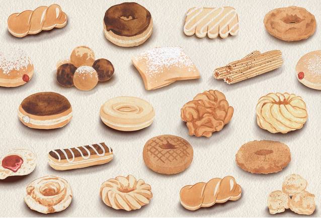 即使看不懂上表,也不用担心,就让吃遍所有种类甜甜圈的小编(其实小编一种也没吃过╮(╯_╰)╭),来为你科普一下甜甜圈的那些事儿~