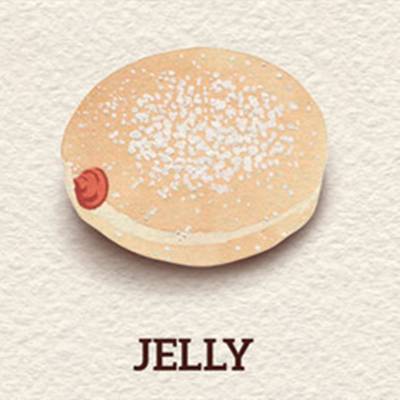 5.结力(果冻)甜甜圈面包类的油炸甜甜圈,造型上近似于德国小吃柏林球和空洞甜甜圈,但是是以结力(果冻)夹馅儿作为填充物。