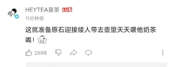喜茶官方B站账号在评论中的发言似乎也在暗示将会与原神联名。