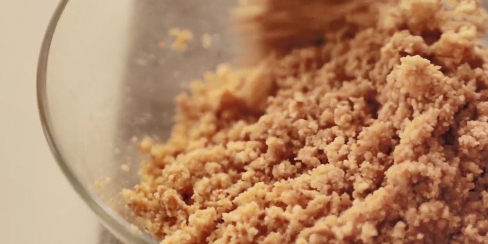 2. 加入融化的无盐黄油,搅拌均匀成湿润的砂砾状
