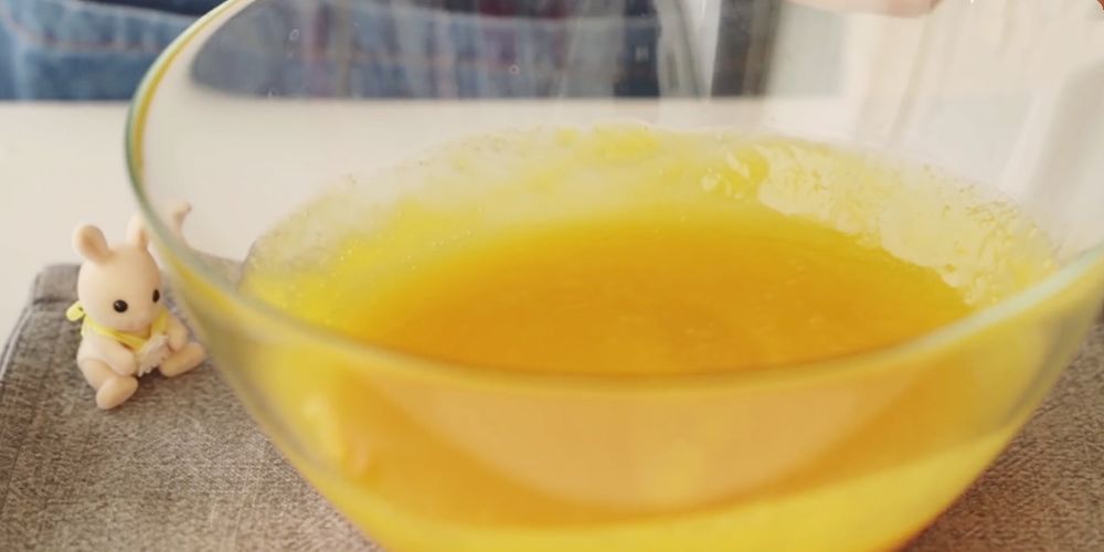 3. 加入泡软的吉利丁(融化),搅拌均匀4. 淡奶油打发至5成发,倒入混合物中拌匀