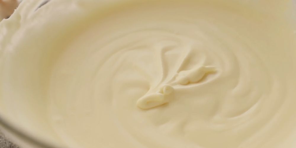 3. 再加入打发至5成的奶油,用翻拌的手法拌匀
