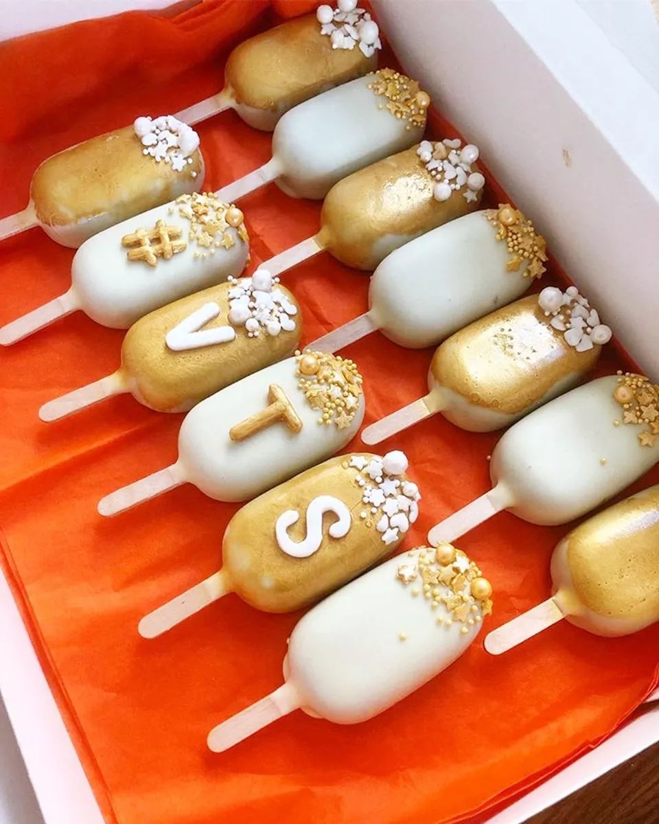 冰淇淋蛋糕▲▲▲果酱夹心▼芒果果茸草莓果茸糖吉利丁片90g90g20+30g5g1.准备两个0.5升的量杯。在每杯放进2.5克吉利丁片,用冰水浸泡。2.在锅中加热糖(20克)和芒果果茸(90克)。3.当芒果果茸和糖的混合物煮至沸腾时,离火,加入泡软沥干水分的吉利丁片,搅拌至吉利丁完全溶解混合均匀。4.将草莓果茸(90克)和糖(30克)放入锅中煮沸。5.煮至沸腾时,离火,加入泡软沥干水分的吉利丁片,搅拌至吉利丁完全溶解混合均匀6.将草莓果酱挤入模具中稍稍冷冻至凝结,再将芒果果酱挤在上面冷冻,备用。巴伐利亚奶油▼吉利丁片牛奶糖蛋黄香草豆荚奶油5g150g30g3个1根180g1.将5g吉利丁片浸泡在冰水中。2.香草荚剖开,取香草籽。3.将牛奶、香草荚&籽、蛋黄倒入锅中。4.中小火加热,用硅胶刮刀不断搅拌,加热至80~82℃时,离火。5.取出香草荚,加入泡软沥干水分的吉利丁片6.当混合物冷却至32℃,加入半打发的奶油,混合搅拌均匀。- 组装 -1.果酱灌模之后再冷冻凝结。2.取出来,切掉一点,留出放棍棒的空间。3.在模具内填充1/2奶油,插入雪糕棒。4.铺入果酱夹心,倒入奶油填满模具。5.冷冻凝固。装饰用料▼白巧克力葡萄籽油180g60g1.白巧克力融化,加入温热的葡萄籽油,拌匀后加入红色粉调色。2.用搅拌机混合均匀,准备上色。- 成品&装饰 -1.准备白色巧克力羽毛装饰件、焦糖榛子碎、覆盆子果粒做装饰。2.将蛋糕体插入粉色巧克力酱中裹涂一层。3.静置约1min后至稍稍凝结,撒上榛子碎。4.第二种装饰是立即将覆盆子块添加到糖霜中,然后重复上述动作浸泡蛋糕。大功告成~成品是这个样子滴妈妈再也不用担心我吃冰棍拉肚子~▼制作方法学会了是不是还有点意犹未尽?不用开口我知道你们想要什么嘻嘻嘻嘻嘻嘻各式各样的冰淇淋蛋糕造型我已经替你们搜罗好啦收了图就直接拿走用吧~(素材来源:ins)超级可爱有木有!夏天摆满甜品柜分分钟成为吸睛利器如果不是因为减肥我一定吃它十几二十个!(其实是因为穷……)可爱的夏天刚刚拉开序幕除了要穿漂亮的小裙子各式各样的甜点也是必不可少的呀我会持续为大家呈现适合夏季的小产品让你的夏天多次多彩一定要持续关注我哟~PS:想要模具的宝宝看过来~☟- 月度好文 -不失败的芝士蛋糕丨巧克力调温技术帖下个潮流:mini甜点|甜点就是要好吃啊微波炉蛋糕怎么做|200高清面包+甜点图