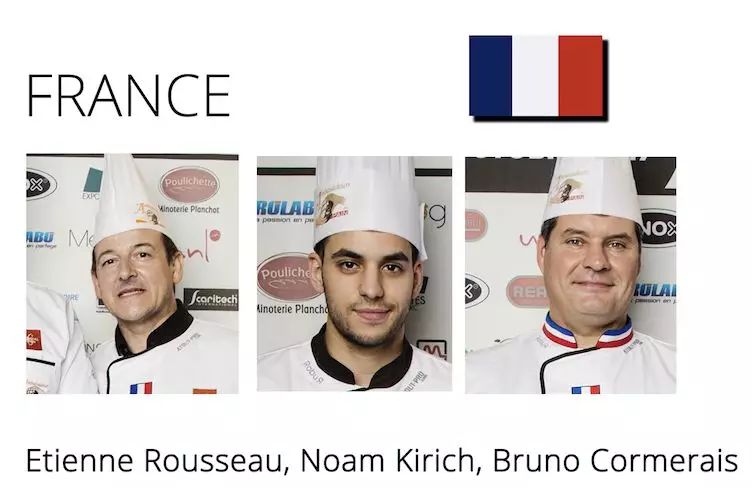 左:选手朋福东 /热爱音乐的烘焙大师 / 2018世界面包锦标赛冠军 / 2017世界面包大赛第六名中:助手龚鑫 /2015年起,在王森咖啡西点西餐培训学校(苏州)担任面包教师一职右:领队吴日珊 /热爱摄影 电影和音乐的烘焙师 /2016年-2017年在Joël Robuchon(上海)担任甜点师一职法国队▼