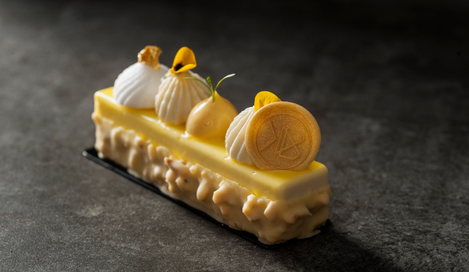 ALMOND CRUMBLE125 g butter 84%125 g sugar125 g flour type 55 2 g salt155 g almond powderProcedure:1/ Realize the first part of the recipe as crumble.Bake at 150℃ for 18 minutes then let it cool down.CRUNCHY IVORY LEMON400 g baked crumble100 g feuilletine140 g clarified butter140 g ivory chocolate 10 g lemon zestProcedure:1/Melt the chocolate and clarified butter,add the rest of ingredients then mix to have nice crunchy base.2/ Pressed the salbe in the oval molds and freeze.ALMOND LEMON SPONGE320 g whole eggs 80 g inverted sugar135 g sugar120 g almond powder135 g cream UHT135 g flour type 55 7 g baking powder 80 g grape seed oil 10 g lemon zest 2 g saltProcedure:1/ Mix all ingredients together then add bake in a convection oven for 6 to 8 minutes.2/ Reserve for montage.LEMON NAMELAKA200 g cream UHT 35% 5 g lemon zest 5 g glucose 20 g gelatin mass190 g Opalys chocolate125 g lemon juiceProcedure:1/ Heat the milk with the glucose to reach the temperature of 80°C.2/ Add the melted gelatin mass then pour over the ivory chocolate in 3 times to perfect the emulsion.3/ Add the cold cream then blend to smooth the Ganache, leave to stiffen in fridge before using.LEMON CONFIT450 g organic Lemon juice225 g sugar150 g lemon zestProcedure:1/ Wash the lemon and prepare the zest with the micro plane.2/ Blench the zest 3 times start cold water to remover the bitterness.3/ Cook with the juice and sugar and make a reduction to 50%.4/ Mix the confit then cook again for few minutes to have a smooth texture.5/ Reserve in fridge for montage.IVORY CITRUS CREAMY160 g lemon juice 80 g lime juice 80 g yuzu juice375 g whole eggs 90 g sugar270 g Ivory chocolate 35% 12 g cocoa butter 28 g gelatin massProcedure:1/ Zest all the citrus and let it infuse for 30 minutes with the juices.2/ Cook with the eggs and sugar to 85°C then add the mass gelatin.3/ Pour the hot liquid onto the chocolate in 3 times then blend to perfect the emulsion.4/ Reserve in chiller for montage.LIME MERINGUE MOUSSE 70 g mass gelatin115 g sugar135 g water125 g lime juiceProcedure:1/ Make syrup with the sugar and water. Bring to a boil. Add the lime juice and the mass gelatin. Bring to a boil again. Leave to set in the fridge for overnight.2/ Whip the jellified syrup in a freestanding mixer until it has the consistency of a mousse.3/ Pour into a rectangular mold or frame approx. 15cm square freeze.4/ Unmold and cut into 1 cm cubes.LEMON NAPPAGE500 g Absolu cristal 50 g Lime juiceQS g Lime green colorProcedure:1/ Boil together then spray the ivory creamy.WHITE ALMOND ICING500 g Ivory chocolate 60 g Grape seed oil 2 g Vanilla pods125 g almond(chopped roasted)Procedure:1/ Melt the chocolate then add the oil and vanilla pods.2/ Finish by 125 g chopped roasted almond adding the chocolate.3/ Use the icing at 35°C.