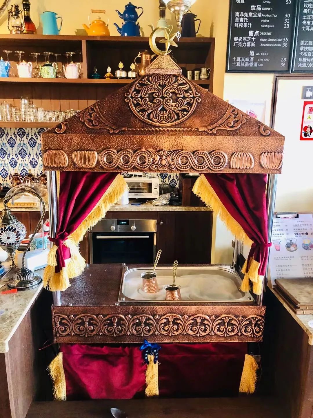 店主丹尼斯来自遥远的土耳其,为爱追随到山东烟台,在这里开了一家土耳其风情咖啡馆。丹尼斯一直致力传播将土耳其咖啡的文化和历史,并将它通过视频的形式呈现出来,让更多的人了解这个有500多年历史的神秘咖啡。现在他将更多的土耳其咖啡器具,陶瓷,设备等引进到中国,让土耳其咖啡走进更多的咖啡馆。