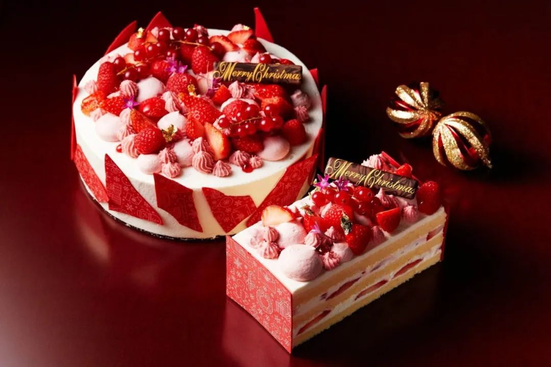 这是每年在东京香格里拉大酒店流行的经典款“圣诞草莓蛋糕”是有超多蛋黄的海绵蛋糕与浓郁的味道和光滑的鲜奶油以及鲜红色的草莓和覆盆子组成,并配合覆盆子奶油,装饰典雅。有两种尺寸:长15厘米x宽7.5厘米,¥4800日元;直径21厘米¥7000日元(含税)。